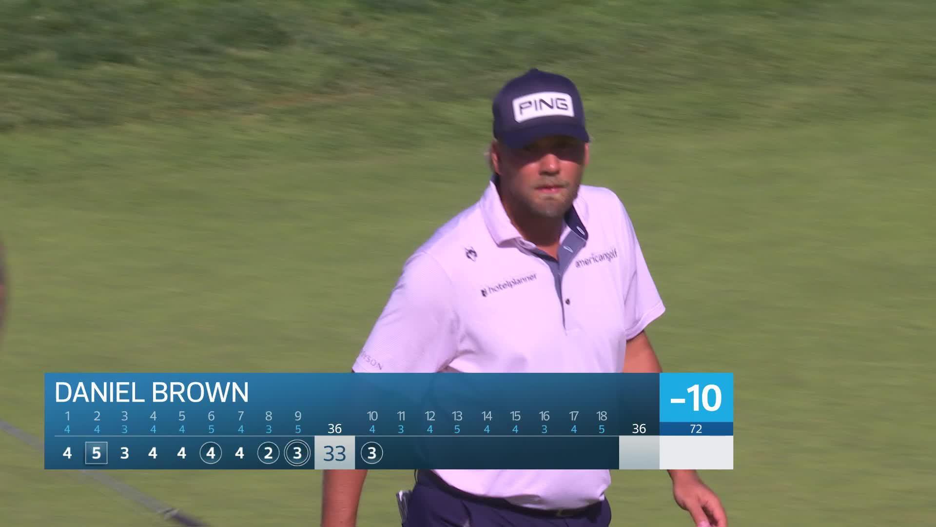 Daniel Brown sinks 7-foot birdie putt on No. 10 at Farmers